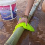 Beim Reinigen, Vermessen, Sägen, Bohren etc. zeigen sich viele Eigenheiten von Bambus. Wir erkennen: es gibt viel zu beachten beim richtigen Umgang. Auch wenn wir bereits viel Wissen von Experten, aus Lehrbüchern und Kursen gesammelt haben, stellt uns die „Hands-on-Experience“ vor einige Herausforderungen. Auch wenn Bambus eine Alternative zu Holz bietet, unterscheiden sich die Baustoffe in Eigenschaften und Handhabung doch sehr.