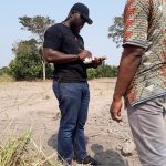 Erste Vorbereitungen des Grundstücks in Woraso: Rodung und Vermessung. In dieser Phase steht uns Myles mit Rat und Tat zur Seite, der extra aus der Hauptstadt angereist ist. Er arbeitet für ein Architekturbüro in Accra und hat bereits einige Erfahrungen mit Bambus-Bauprojekten.