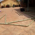 Auf dem lokalem Holzmarkt wird auch Bambus angeboten. Die dort verfügbaren Bambusrohre sind unbehandelt, durchschnittlich vier Meter lang, die Durchmesser variieren stark. Viele Halme werden zu jung geerntet, sind krumm, beschädigt und teilweise bereits von Ungeziefer befallen. Der Erntezeitpunkt liegt zu lange zurück, um die Bambusrohre nachträglich mit Borsalzen behandeln zu können. Auch wenn die Qualität eher unbefriedigend ist, kaufen wir einige Rohre für unsere Versuchszwecke. Außerdem beschaffen wir die Werkzeuge und Materialien, die für das Bauen mit Bambus benötigt werden.