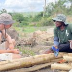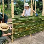 Der intensive interkulturelle Austausch über die verschiedenen Möglichkeiten und Techniken der Lehm- und Bambusverarbeitung war für alle Beteiligten besonders wertvoll. Gemeinsam werden Vorgehensweisen besprochen und Lösungen für kritische Stellen gefunden.