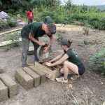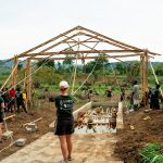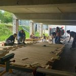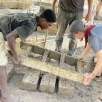 Nach acht Tagen an der Baustelle sind unsere Helfer der Hochschule RheinMain am Ende ihrer Exkursion und können zufrieden auf die Fortschritte am Projektgelände blicken: Zwei Rahmen für das Hallendach sind aufgestellt und der Rohbau des Toilettenhauses ist fertig.
