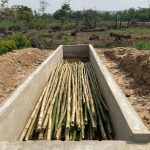 Im März beginnt die Konstruktion der Überdachung des Behandlungsbeckens und der Bau eines Toilettengebäudes aus den nachhaltigen Baustoffen Bambus und Lehm. Dies geschieht in kooperativer Zusammenarbeit mit der Hochschule RheinMain und unseren Partnerorganisationen vor Ort BIDG und ABC.