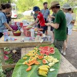 Für die Pausenzeiten wurde ein Baustellen-Camp eingerichtet. In der Feldküche sorgen unsere Küchenfeen Conny und Rose mit lokalen Speisen für das leibliche Wohl.
