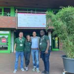 Die Messe ist nicht nur ein wichtiger Treffpunkt für Fachleute, Interessenvertreter und Entscheidungsträger der Bambusindustrie in Europa, sondern bietet auch eine globale Perspektive. Somit waren wir als Verein mit Sitz in Deutschland und unserem Bambusprojekt in Ghana, neben einigen anderen globalen Akteuren, dort sehr gut untergebracht. Besonderes Highlight war für uns die Anreise unserer Partner Emil Fischer (BIDG) aus der Schweiz und Vincent Pratt (ABC) aus Ghana. Als Infostand diente uns der einzigartige und eindrucksvolle „Bambillon“ der Hochschule Rhein-Main – ein Experimental-Pavillon aus gebogenen Bambuslattenträgern, welcher eine der Hauptattraktionen auf dem Außengelände der internationalen Fachmesse war.